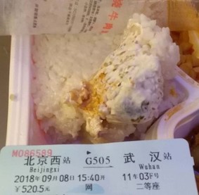 JUGEMテーマ:中国 湖北省メディアの湖北日報網によると、北京西駅発・武漢駅着の高速鉄道車内で売られていた弁当に、大量のカビが生えていた。気づいた人が抗議したが、同時に弁当を買った人はその時までに大半を食べてしまっており、しばらくして、嘔吐や下痢の症状に見舞われた。 (略)ZさんとXさん(略)車内販売の弁当を購入した。(略)Zさんが開封して食べようとしたところ、米飯の部分に大量のカビが生えていた。 乗務員に話したところ、まずチーフ車掌がやってきて謝罪。次に弁当を扱っている食堂車の職員がやって来...