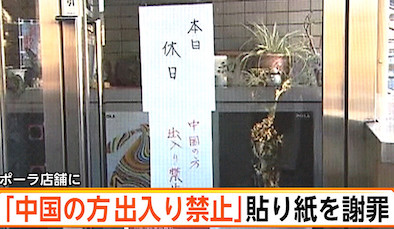 JUGEMテーマ:中国 化粧品会社のポーラは、同社の店舗で、「中国の方 出入り禁止」という不適切な貼り紙をしていたことを明らかにし、謝罪した。(略)ポーラは、「多くの皆さまにご不快な思いとご迷惑をおかけし、誠に申し訳なく、遺憾に思っております」と謝罪した。ポーラは、事実確認ができ次第、この店舗の営業を停止する方針。 https://headlines.yahoo.co.jp/hl?a= 20171126-00022099-houdouk-soci 適切な張り紙のはず ・・・・・・・・・・・・・・・ 断腸の思...