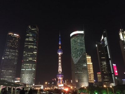JUGEMテーマ:中国 【1日目】その3 その1 その2 −−−−−−−−−−−−−−−−−−−−−−−−−−−−−−− 中国在住の友人達が、蘇州を出たとのことで、 私達も待ち合わせのホテルに戻ることにしました。 上海は夜歩いててもこんな景色が広がってて飽きない。 帰りも行きと同じで、渡し舟で帰りました。 ここまで友人をたくさん歩かせたので、 もう外灘からホテルまで歩きたくないとのことで、 タクシーで帰ろうとするけど、上海タクシーなかなか捕まらない。 タクシーのりばらしきところで待つ...