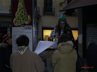 今回は、2003年12月15日のパドヴァの写真です。 ↑↓この2枚。パドヴァ大学を卒業した人のお披露目みたいなものです。日本の大学とは違い、パドヴァ大学には決まった卒業日はありません。卒業研究をして合格した学生が個別に卒業証書を貰うのです。 その後、パドヴァの中心部に繰り出して御祝いをするのです。「私○○は×月△日に生まれて・・・パドヴァ大学に入って・・・○○なことをしました」なんて言いながら、手に持った(持たされた?)アルコールを飲むのです。 そして卒業生及びその周りの人が「ドットーレ♪ ドットーレ♪...