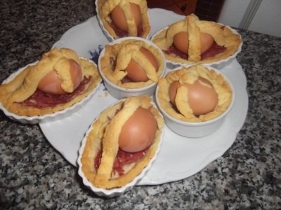 前菜は3品、ロシアサラダ(ポテトサラダ)と、 卵の巣を象ったオーブン焼。おばあちゃん作 リコッタ&ホーレンソウのキッシュ(卵入り)。 切ると切り口に卵がくるようになっている。 プリモは、お肉のトルテリーニ(餃子の小さい感じの詰め物パスタ)パンナ&ポルチーニ(乾燥キノコ)ソース セコンドは、ウサギ、鳥肉、豚肉、子羊、牛肉の勢揃いだったけど… ここでストップ! みんな、プリモまででお腹いっぱいになり、夕食以降に持ち込んだ… かなりの量です JUGEMテーマ:おうちごはん JUGEM...