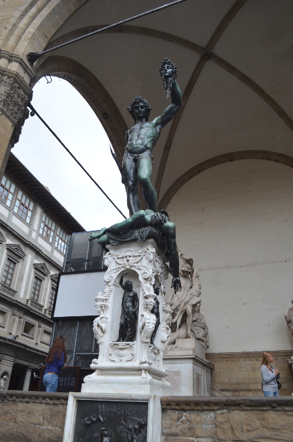 2012年9月イタリア旅行 その45朝いちばんにドゥオーモのクーポラに上って、フィレンツェの美しい町並みを望みながらママさんとエアー竹ちゃん(竹野内豊氏)主演で冷静と情熱のあいだゴッコをしておりました。さてそのあと、地上に戻ったらお次は私の恋の相手に会いにいきましょう〜チェッリーニ作、『ペルセウス像』ペルセウスがメドューサの首をはねている、ぞくっとする一場面。一昨年のフィレンツェ日記にも書いてました、大好きだぁぁぁ、と!!!笑毎回ものすごい枚数の写真を撮ってしまうんですよ。構図なのか、この顔...