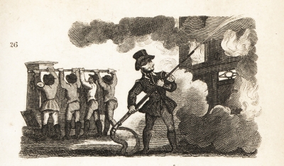 JUGEMテーマ:イギリス 『都市の風景、ロンドンをのぞき見』 の本からのご紹介です〜 ロンドンの消防隊です 水を汲み上げて消火中 1666年のロンドン大火の後、街の中にいくつかの消防隊が生まれました この版画では、消防士が燃えている建物に水のでるホース...