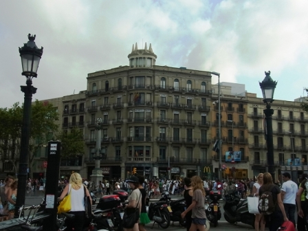 JUGEMテーマ:スペイン とうとう今回のスペイン旅行、最後の都市バルセロナに到着です。 トレンホテルは、あんまり寝られなかったなぁ。 でも、海外で寝台車に乗れて楽しかった! バルセロナ・サンツ駅に到着し、まずはホテルへ向かいます。 バルセロナで宿泊したホテルは、ホテル ミディアム モネガル タクシーの運転手さんもイマイチわからないような感じだった(発音が悪かった?) ので、カタルーニャ広場へ行ってもらうことに。 ↓カタルーニャ広場から見た、真正面がホテル。 1階にマクドナルドがあって...