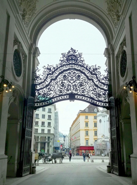 JUGEMテーマ:ウィーン 鉄飾りが見事です。撮影は2016年5月01日、車道の真ん中からの撮影です。 5月01日はメーデー行進のために午前中リンク通りの交通が遮断され、車が来ないことから路の真ん中に立ち止まって写すことができました。 正面に真っ直ぐ伸びる路は、歩行者天国の「コールマルクト」。 ブランド街として知られるコールマルクトには王宮御用達のケーキ屋さん「デーメル」があります。 ちょっとわかりにくいですが、向こうに見える馬は、観光用の馬車フィアカーです。 フィアカーは、 乗客4人までの利用で...