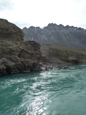 JUGEMテーマ:インド レー市内の観光をし、そのまま宿泊先のヘミス村まで移動。 ヘミス村はインダス河上流の村。 左手には砂礫と岩山しかない荒野、右手にはインダス河の幹線道路を進む。 ヘミス村の手前の岩山。インダス河を渡り幹線道路を外れ、少し登る。更に標高があがる。