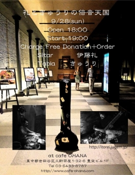 夏もだんだんと去り行くこの季節 秋の足音と 秋虫たちのさえずりとともに 空気が澄んで行くのを肌で感じながら 研ぎすまされて行く感覚と感性 どこからともなくやってくる インドの音たち シタールとタブラ 遥か彼方の異国の音を 土着の僕ら日本人 二人で奏でる倍音学 よってらっしゃいみてらっしゃい 体に自然と染み渡る 心地の良い音と酒 どこからともなくやってくる 日本の音たち したーるとたぶら ● 9/28(日) 伊藤礼(シタール) & きゅうり(タブラ) ロングセッション! 〜礼ときゅうり...