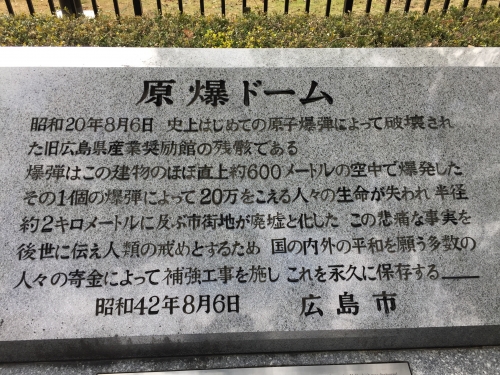 2月1日(木)雨/曇り/晴れ 気温26.7 湿度76 9時35分現在 おはようございます。 引き続き日本出張編をブログアップします。 お好み焼で腹ごしらえした後は原爆ドーム、平和公園、資料館の見学。 原爆ドーム=旧広島県産業奨励館跡。 外国人観光客も熱心に説明文を読んでいました。 記念碑に手を合わせた後は資料館を見学し JR広島駅に戻らずに平和公園と宮島を結んでいる高速...