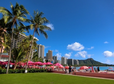 2017年11月のハワイ旅行♪ ピンクパレスこと「ザ ロイヤル ハワイアン」のオーシャンフロントレストラン「Surf Lanai サーフラナイ」でランチしました mai tai bar マイタイバー ガバナ席 ロイヤル マイタイ Royal scratch mai tai $15 ...