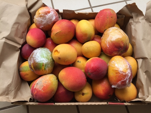 6月13日(火)晴れ 気温27.4 湿度68 5時10分現在 おはようございます。 ダイヤモンドヘッドの麓に暮らしている知人から連絡があり・・・ マンゴーを たくさんいただきました〜♪ ヤッホー!! 完熟マンゴー♪ 今年はたくさん実がなったようで何より♪ 食べきらないのでご近所さんにおすそ分け〜♪ とりあえず、ピューレにしたり、角切りにしてジップロックに保管し...