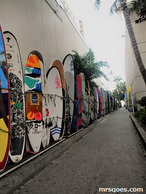 JUGEMテーマ:ハワイ こんにちは! 2016.12ハワイ37 帰国日その1です。 帰国日朝、サーフボードの小道を抜けて ワイキキビーチ お散歩【1】 あー、ついに帰国日の朝になってしまった。 でも、私たちの乗る デルタ航空名古屋便は、 午後2:40発 (現在は1:39発)なのだ。 HISにお願いした空港までの混乗車は、 12:00にホテルに来てくれる。 まだまだ、時間がある。 帰国日も 半日 時間があるのは、なんだか とっても得...