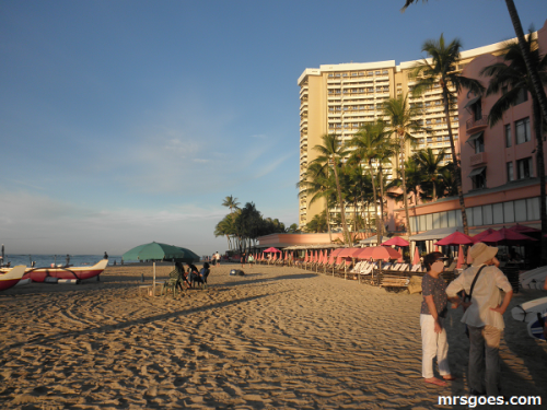JUGEMテーマ:ハワイ こんにちは! 2016.12ハワイ38 帰国日その2です。 帰国日朝、サンライズ ワイキキビーチ お散歩【2】 ピンク色のロイヤルハワイアンも シェラトンワイキキも登ってきた朝日に照らされている。 まだ、人も少ないワイキキ・ビーチを西の方へ歩いた。 わあ、アウトリガーカヌーだ。これって、安定していて ほぼ、ひっくり返ることは ないんだってね。子供からお年寄りまで楽しめるそうだ。 これに乗って、3回ぐらい波乗りを体験させてくれ...
