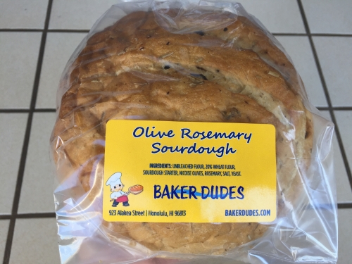 5月15日(月)晴れ 気温26.2 湿度61 6時25分現在 おはようございます。 先週土曜日にカカアコの朝市で↓の『オリーブ・ローズマリー・サワードウ』を買ったんですが・・・ いやぁ〜ローズマリーの香りがすごいんです♪ 1個$6.00。 ところどころ黒く見えているのがローズマリーの葉ですかね! ガーリックパンを好んで買ったりしていますが、朝食にはローズマリーの香りもなかなか♪ 味も...