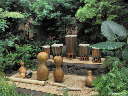 JUGEMテーマ:ハワイ こんにちは。ケイトです。 すっかり暖かくなりましたね。2016.12ハワイ旅行記9 到着日その8、いきます。 アウラニ・デイズニー、外に出てみたら 雨が降ってるけど、建物の外も ぶらぶらしてみましょ。 ん?これは! フラに使う楽器が並んでいる。 手前から、竹の先に切れ目を入れたプイリ? 竹どうし、又は体を叩いて鳴らすそうな。 その向こうは、瓢箪で出来てるイプ、大きいサイズの2つは形から...