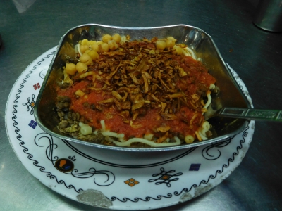 JUGEMテーマ:エジプト エジプト料理 コシャリ エジプトの国民食。 米、パスタ、豆、揚げた玉ねぎ。 右のボトルがニンニク酢、左は辛いソース。 コシャリの味が薄めなので、自分で調節。 向かいのお兄さん、2杯食べてた… 正直、飽きてくるので、1杯も食べれない。 アスワン ルクソール 砂漠のオアシス 初めて食べた、鳩の肉料理 さっぱりして美味しかった タンドリーチキンホールは食べれるのに、こ...