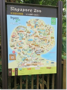 シンガポール動物園といえば、夜の『ナイトサファリ』が人気です! 夜行性の動物たちの動きが見られることと、熱帯特有の暑さが収まって、しのぎやすいということもあります。 でも、夜は街中に戻らないと行けない私は、リバーサファリに引き続き、ZOOへ! (画像はクリックすると大きくなります) 地図を見て計画を立てよう! 初めに、ショーの時間や餌づけタイムをチェックするといいそうですが・・・ 一日いるわけではないので、いいのがないなあ。 Rainforest Fights Back Show ひとつだけ、ショーを見ました...