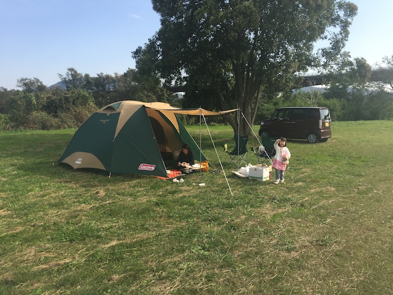 10月30日。 嫁さんも一緒に家族3人でのデイキャンプ。 場所はいつもの、そうじゃ水辺の楽校。 トイレが汚いのが難点だが、利用料がかからないので好き。 テント立てるのも2回目なので、今回は上手に立てられたと思う。 こないだAmazonで買ったキャノピーポールもデビュー。 コールマンの純正ではなくて、2本入りでロープもペグも袋もついてて激安のやつ。 ただ、これ自在金具がきちんと止まらなくて、テントのロープで代用した。 ...