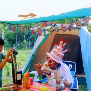 JUGEMテーマ:ファミリーキャンプいつの話??6月21日の話。去年と同じキャンプ場でまたダンナのお誕生日キャンプをしてきたって話。実はこの日も雨のキャンプ。我が家は8割が雨のキャンプ。誰なの??雨男雨女は??そんな会話ももう飽きた。笑夕飯はバースデイおじさんがお好み焼きを作ってくれました。外で食べるお好み焼き♡美味しい!!雨音を聞きながらお好み焼きと赤ワイン♪なかなかいいもんです。朝食はホットケーキ・・・フライパンを2個持ってくればよかったと後悔しました。1枚1枚に時間かかるったら!雨が降っても手...