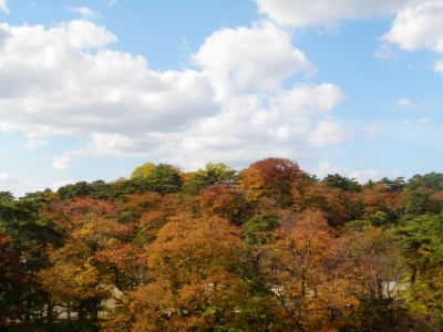 JUGEMテーマ:紅葉JUGEMテーマ:北東北11月23日(土)連休初日。午前に入院患者さんの回診。経過は順調なり。千秋公園のもみじがひときわ見事に色づいている。赤と黄色、お堀端の水面にも落ち葉がちりばめられている。松の緑とのコントラスト。錦絵のようだ。今年の紅葉はいつもよりも美しいと思うのはなぜだろうか。H