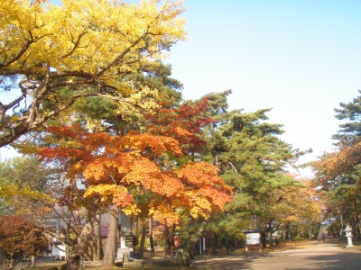 JUGEMテーマ:紅葉11月4日(月)3連休の最終日。朝は濃霧が立ち込めていたが、午前8時をすぎると青空がのぞく。秋田市中心部にある千秋公園。朝のすがすがしい空気のなか紅葉が映える。大イチョウの黄色。松の緑、カエデの赤。桜の葉はやは色あせているが見事なコントラスト。遠くには太平山。秋は一日一日深まっていく。H