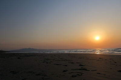 JUGEMテーマ:北東北 3月19日能代での診療が終わると、夕陽が呼んでいた。 車で夕陽を追いかける。 男鹿半島と日本海に沈む太陽 砂浜にはだれもいないとおもっていたが よく見ると波の合間に人影 サーフィンをしていた 今日は5月なみの気温。 サーファーには、季節は関係がないのだろう。 しばし夕陽が沈むのを待つ。 するとかわいい親子が現れた。 夕陽を背に女の子がポーズをとっている。 日本海の夕陽 こんな平和な日があってもよい。H