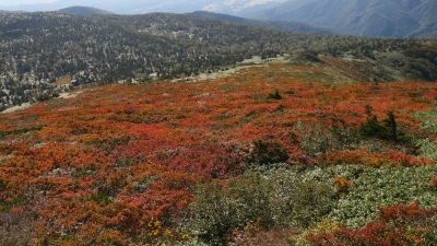 JUGEMテーマ:北東北 10月8日体育の日 午後から紅葉見物 近場で見ごろなのは、鳥海山5合目の鉾立 6日に登山したメンバーから見ごろとの情報を得ていた 奈曽渓谷の向こう側に鳥海山 紅葉が見事なグラデーション 稲倉岳 いつもは山スキーで登るピーク 紅葉は徐々に麓に降りていく。H