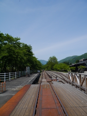 せ〜んろはつづく〜よ〜、ど〜こま〜で〜も〜♪神岡鉄道の線路です。ひょんなご縁で、高山市の北にある神岡に行ってきました。神岡鉄道は、廃線になってひさしいのだけれど、今はこのレールの上を、なんと――、自転車が走る!2台1組の自転車を線路にはめ、その自転車を、お客さんがせっせとこいで走らせるのです。みなさん、お金を払った上に、嬉々としてこぐらしい。そして、なにしろ元が単線ですのでね、行ったら帰って来なければなりません。帰りはやや上り坂なので、たいへんそうですが、電動アシスト付ですから、何とかなる(らし...