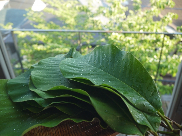 だだん! 前の晩、しごと帰りに、 例のホオノキ(⇒☆)から もらって来ました。 大きなのは、 ウリ猫がまるまる1ぴき 乗れるほどです。 グリコさんにも検品依頼。 猫らから合格をもらったので、 朴葉寿司の製造にかかります。 自分ちの庭にも、 食べられるものが生えてきました。 ミョウガの「親」と、 セリの新芽。 ふつうソウメンの薬味などに使うのは、 ミョウガの花、というか、つぼみです。 あれは、ミョウガの「子」と呼んでい...