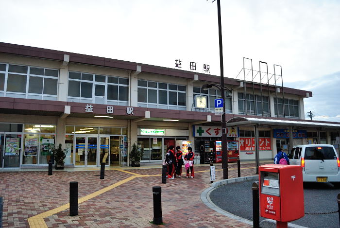 三江線潮駅で途中下車して桜と風景と温泉を楽しんだあと、 粕淵の町並みも散策して再び三江線で終点の江津まで。 山陰本線に乗り換えて益田駅まで行って一泊しました。 早朝の益田駅 山陰本線の下りに乗って、益田から2駅ですが 山口県との県境まで行ってみます。 車窓よりのぞむ、朝日に輝く清流・高津川 列車は日本海を望みながら進みます。 途中の戸田小浜駅は柿本人麻呂生誕の地で 海水浴場もあります。 赤い石州瓦の家並み、 その向こうの海の中の岩礁に神社があるのが見えます。 飯浦(いいのう...