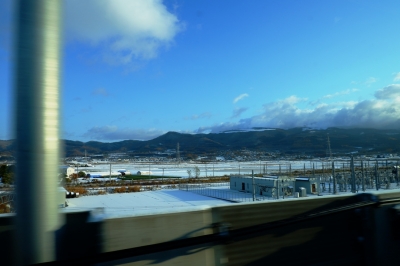 【写真−1 今回の旅で青空を見ることは少なかった】 定刻に新函館北斗駅を出た『はやぶさ12号』は、写真−1の薄く積もった雪原を左に見ながら快走する。やがて、海岸伝いに走るが逆光で海の様子は分かり難く、下りでは青函トンネルの説明を車内放送でやっていたが、いつの間にかトンネルに入り通過。 【写真−2 きれいに整備された水田はこの地域の産業が農業の証左】 北海道側の雪景色も青函トンネルを抜けて本州側に入ると、写真−2のように枯れた田園風景の広がる地域を走る。目...