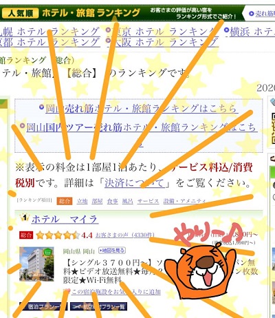 こんにちは! 現在!楽天トラベル人気順ランキング 岡山エリア総合部門にて人気1位を頂きましたー‼️ ひとえに皆様から頂いた温かいクチコミご投稿のお陰でございます。 感謝の気持ちで一杯です。 誠に有難うございます‼️ そして、只今! 楽天トラベル・スーパーSALE開催中ー! カップルプラン*お一人様1,990円(税込)〜 お一人様スペシャル*2,700円(税込)〜 9月〜12月までご予約いただけます。 Go Toトラベ...