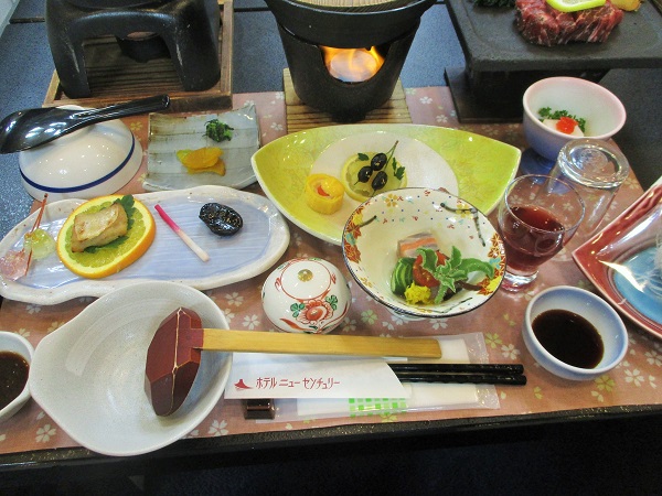 富士河口湖温泉ホテル ニューセンチュリーにて夕飯を頂きました〜♪ メインはステーキ! 溶岩プレートで焼いていきます! やわらかくて美味しいステーキでした〜♪ お刺身も美味しかった! みょうがのお寿司♪ 夕飯もほうとう! お吸い物、美味しかった〜。 深い味わい。 デザートもね。 河口湖温泉 ホテルニューセンチュリー 山梨県南都留郡富士河口湖町浅川180-1 JUGE...