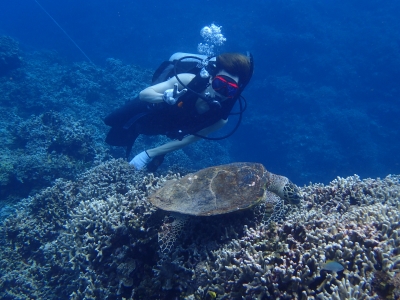 JUGEMテーマ:沖縄 観光 ダイビング 天気: 晴れ 気温: 32℃ 水温: 26℃ 風向: 南西 波高: 1.5m スーツ 3mm まずはケラマ便。 リピーターさん2名でケラマへ。 昨日苦戦したカメさん。 本日ロープ下(笑) 2本目7番崎。 いつもとは違う方向へ。 ラピュタの世界が広がってました。 小物探して。次々と。思いのほか見つかるものです。 ガラス。私モロイのよ。。。 三本目、よい流れ。泡ぴゅ...
