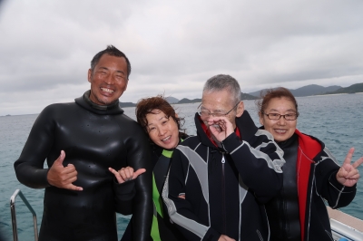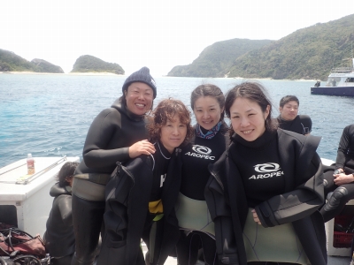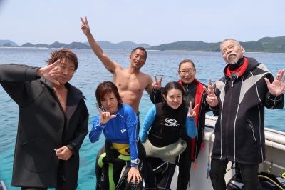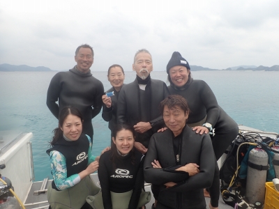 JUGEMテーマ:沖縄 観光 ダイビング 天気: 晴れ 気温: 27℃ 水温: 23℃ 風向: 南→北 波高: 2m スーツ 5mm こんにちは、上田です。 とうとう沖縄は夏のような気温になってきましたよ。 半袖でも汗ばむ感じでいいですよ〜。 皆さん、遊びに来てくださいね。 さて、今日は慶良間ファンチームと到着日ファンチーム、 講習初日チームでした。 まずはファンチーム! 平均年齢・・・(笑)で楽しんできました! 良い笑顔ですね!...