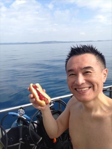 沖縄本島の東海岸ダイビングはまるで海外リゾートダイビング。 おかえりなさい!念願の? 初東海岸ダイブ! ホットドックをたべながらのんびりダイビングでした!! Dive st East cost of OKINAWA. It is like the overseas resort. Slowly & Relaxed dive! JUGEMテーマ:沖縄 観光 ダイビング