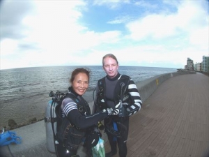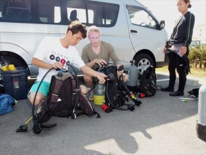 今日は国際色が豊か。 OWコースは南アフリカから台湾人。 AOWコースは日本語ばっちり韓国人と、英語ばっちり日本人の2名。 DMコースはアメリカ人とパートナーの日本人。 FUNダイバーは英語通訳日本人。 基本の共通言語は英語。 でも日本語も適度にOKで、ルー大柴状態。 みんなでtogether して dive したぜ! We enjoyed dive together four countries divers in OKINAWA today. one OW course student two AOW course students two DM candidates one fun diver The common language is English. but ...