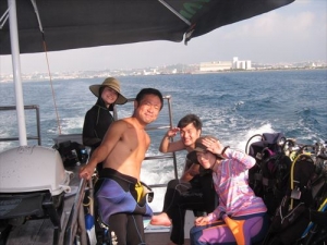 台湾からのゲストのOW講習最終日 強い風でコンディションが良くなかったけど 上手に潜れるようになりました。 ダイバー認定、おめでとう! The last day of PADI Open water course students from TAIWAN. It was strong wind . So unlucky too ! Their dive skills very good. Became The PADI diver. Congrats!! JUGEMテーマ:沖縄 観光 ダイビング