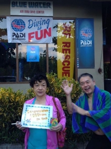 バリ島ツアー初日。 28th Feb 2014 目標のカツコさんの1000ダイブ達成! 潜り過ぎ!笑 とにかくおめでとうございます。 Honu Honu in Tulamben Bali day 1st. Congratulations Katsuko! She dove 1000 times. It's amazing record. JUGEMテーマ:沖縄 観光 ダイビング