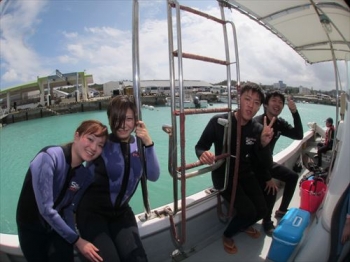 仲良し4人組が遊びに来てくれました!!朝、那覇に着いて、その日の午後にはダイビングしている弾丸ツアー!!ライセンス有る方、人生初ダイビングの方もみんなで水中を、魚たちを、無重力感を楽しんで頂きました!!2名の方、ライセンス取得、まっていますよーーーー!!JUGEMテーマ:沖縄 観光 ダイビング