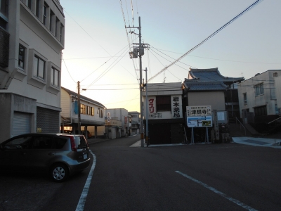 室戸市は高知県内に11市ある中で最も人口の少ない市で、その数1万3千人弱。市というにはそれらしき繁華街もなく、国道沿いの所々に集落が固まる。 【写真−1 地方の町の日暮れ時というのはこういう寂しさが漂う】 陽が落ちかけている中、取り敢えず二十五番札所『津照寺(しんしょうじ)』に向かう。写真−1は右手に入ると津照寺に至る手前の様子で、人一人いない寂しい光景。 道の左側に建つ建物の後ろ側はしっかり作られた漁港があるもののやはり人影はなく、船が舫われていただけ。 【...