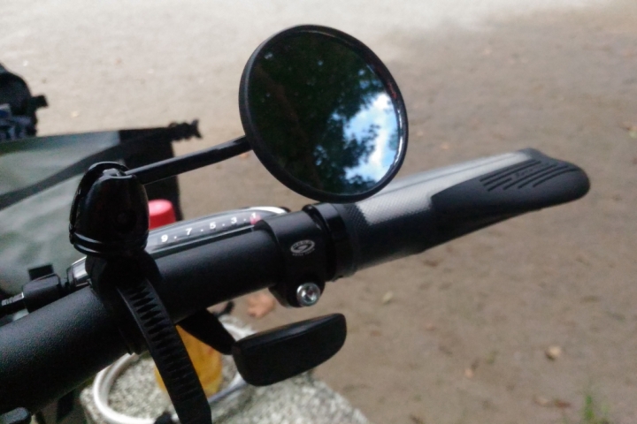 昨日はハンドルバーの端っこにミラーが付けられないことが判明。 折角新しく買ったのに。 旅118日目 なんとかミラーを付ける方法が無いか取り合えず弄ってみる。 バーエンドに付かないとなると こんな付け方しかないかな。。。 シフターが邪魔してこれ以上外側には付かない。 これじゃ体とザックで後ろ見えないんじゃないか? 乗ってみると あれ。 意外と脇の下から後ろ見えるな。 ちょっと試しに走ってみましたが、何とかな...
