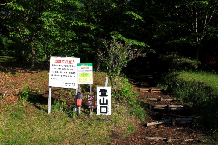 雨のせいで随分と待たされた岩手山登山! 昨日はベースとなる馬返しキャンプ場へ到着! 今日こそ登れるのか? 旅38日目 4:45起床 予定してたより寝てしまった。 避難小屋泊も視野に入れ、寝袋、マット、明日の昼までの食料&水をザックに詰めこみます。 準備も完了し、6:30登山開始! 標高640mくらいから2038mへ向かいます! 上の写真のところから登り始めてすぐ、数分歩いたところにこんな広場が。 あれ?昨日テント張った場所より平らなんですけど...
