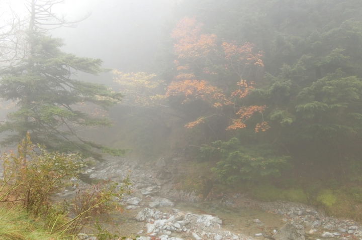 昨日は弥山頂上も八経ヶ岳もスルーして小屋に直行。 さて、天候、どうですかね。 10/23、更新 旅363日目 朝になっても、微妙に雨。 ガスもこんな感じで。 こりゃ明星ヶ岳のほう周っても白いんだろうなぁ。 暫し外の様子を見ながら小屋で過ごすも、なかなかガスは晴れず。 って事で、明星ヶ岳ルートはやめて、弥山→八経ヶ岳→弥山→行者還トンネルってプランに変更。 ゆっくり過ごして、11:30、出発。 出る段になって気付いたんですが、入...