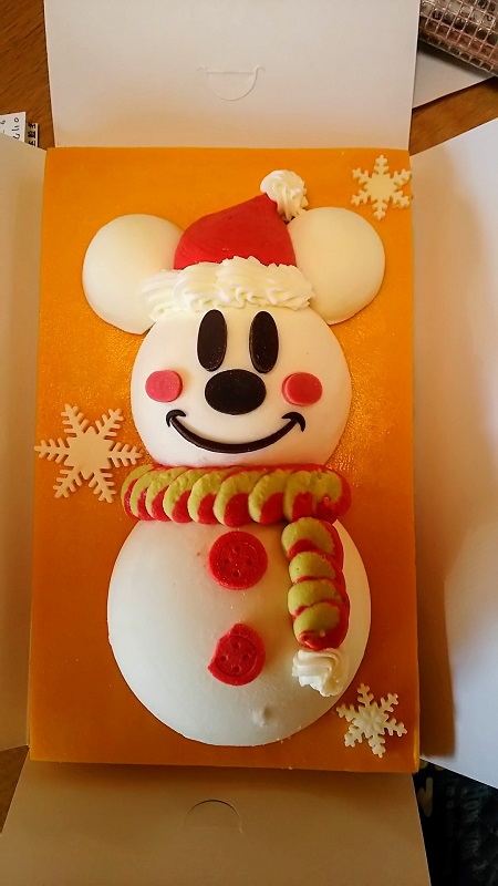 今年は、パーク内でクリスマスケーキの販売がありました。 アイスケーキです。 雪だるまミッキーの。 スノースノーと言うんですね。 この見た目の可愛さに連れて購入してしまいました。 お値段的には涙涙なんですがね・・・(苦) 姉ちゃんたち呼んだので、食べます。 切ります。 包丁入ります。 入りました!!!! 思いっきり行きました!! 断面はこんな感じ。 土台のマンゴーシャーベットがちょっとすっぱかったかな〜 雪だるま部分のマスカルポーネ...