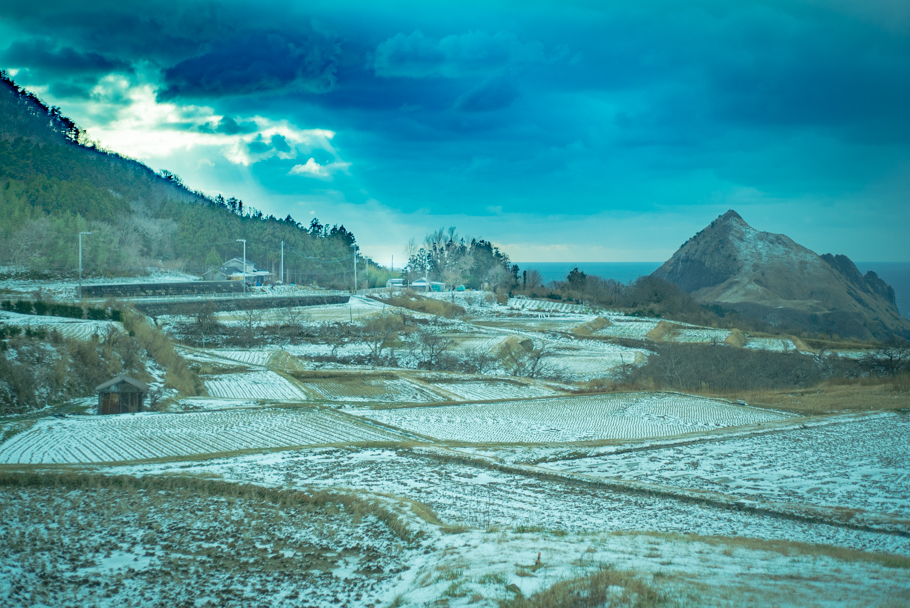 そして願(ねがい)です。 【α7SII,Industar 61L/Z-MC 50mm/F2.8,1/1600,iso100】 【α7SII,Industar 61L/Z-MC 50mm/F2.8,1/200,iso100】 願大橋より。 願集落は海端にありますが、佐渡一周線は海岸段丘の上を走っています。 正面には大野亀が、、、 【α7SII,Industar 61L/Z-MC 50mm/F2.8,1/200,iso100】 そして背後にはニツ亀が鎮座しています。 【α7SII,Industar 61L/Z-MC 50mm/F2.8,1/250,...