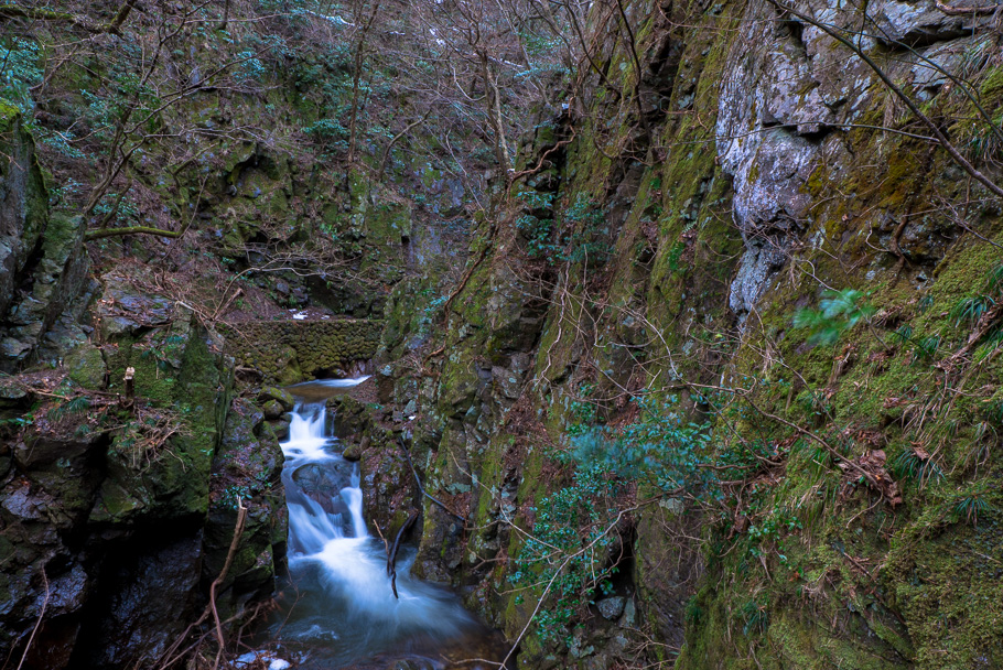 佐渡随一の清流を誇る戸地川です。 その支流である、小俣川に足を踏み入れてみました。 【α7S,LA-EA4,Vario Sonnar T*16-35mm F2.8 ZA SSM II,1.3,F11,iso100】 その小俣川に架かる「めがね橋」の上に立ってみました。 上流側を望みます。 切り立った岩壁の底を流れる小俣川です。 正面には石垣が見えますが、突き当りにある魚留滝からの水路が続いています。 【α7S,LA-EA4,Vario Sonnar T*16-35mm F2.8 ZA SSM II,0.4,F5.6,iso100】 その魚留滝です。 かつては、滝の落ち口に取水口があったんでし...
