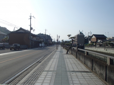 早朝の市町川、あしべ通りです。綺麗にゴミ一つ落ちていません。 玉津島神社、塩竈神社〜東照宮、天満宮を結ぶ動線になっています。 多くの人々が行き交います。 電信柱を茶色に交換中です。ここから三断橋まで電信柱は一切ありません。