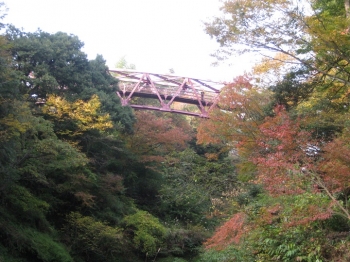 JUGEMテーマ:名所. 11月10日(月) 山中温泉の鶴仙渓・大聖寺川に架かる三本の橋の紅葉散歩。。。 二本目の橋は「あやとり橋(あやとりはし)」。 こおろぎ橋〜あやとり橋〜黒谷橋に至る1.3kmの遊歩道の中間辺りにある。 温泉街から対岸の桜公園や鶴仙渓へと渡ることができる散歩コース。。。 鶴仙渓から見上げれば、まるで谷間を駆ける龍の姿のような「あやとり橋」が見える。 それもそのはず、橋からすぐ上流で翡翠色の水を深く湛える「道明ヶ淵」には、蛟龍(こうりゅう、こうりょう)伝説が残る。 鶴仙渓から見た ...