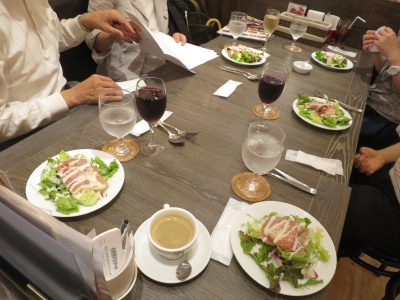 JUGEMテーマ:楽しい旅行★Happy Traveler #ディナー #英語サロン 英語サロンが終わってから いつもと違うお店に行こう!となり 新しくきれいになったダイエーの上の階のレストラン街に行きました。 スパゲティーのお店に入り dinnercourse をみんなそれぞれに スパゲティーや飲み物を注文 ワインを飲める人はいいなぁ〜 大人な感じね。 私はホットコーヒーです。 前菜にサラダ 飲み物 スパゲティー 美味しかったです。 ごちそう様〜 皆様のお話も楽しくて 素敵な時間をありがとうございます。