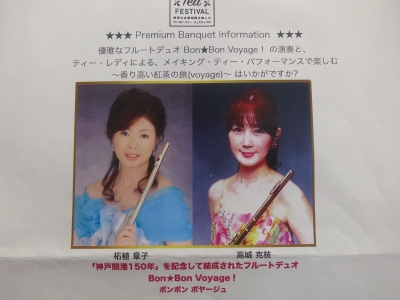 ★★★ Premium Banquet Information ★★★ 阪急梅田ワールド・ティー・フェスティバル 優雅なフルートデュオBon★Bon Voyage! の演奏と、 ティー・レディによる、メイキング・ティ・パフォーマンスで 楽しむ〜香り高い紅茶の旅(voyage)〜はいかがですか? 【Bon★Bon Voyage! プロフィール】 神戸開港150年のアニバーサリーイヤー(2017年)を記念して、 国際フルートシティ神戸で、ラグジュアリーホテルイベント機に 結成された、実力派フルーティスト柘植章子と高城克枝による 優雅なフルート・デュオ。 フランス...